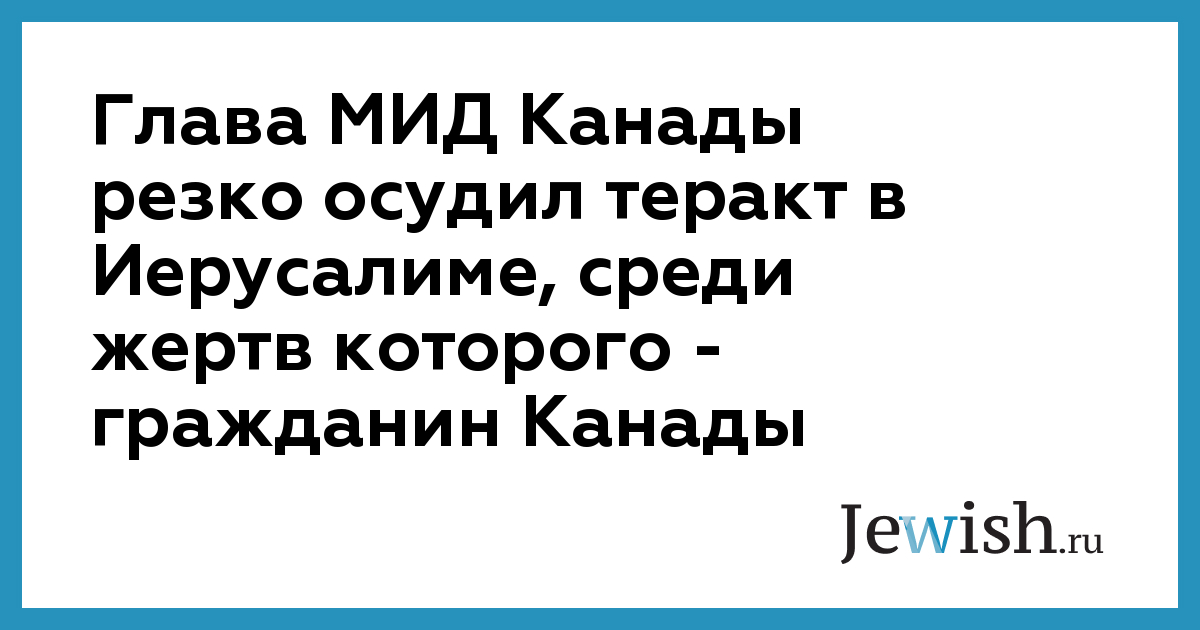 Глава МИД Канады резко осудил теракт в Иерусалиме, среди жертв которого — гражданин Канады