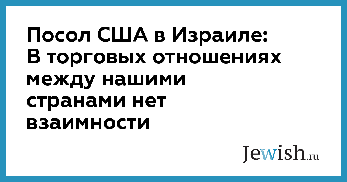 Посол США в Израиле: В торговых отношениях между нашими странами нет взаимности