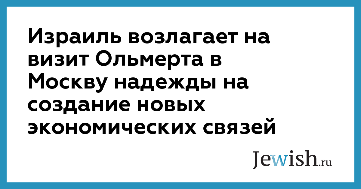 Израиль возлагает на визит Ольмерта в Москву надежды на создание новых экономических связей