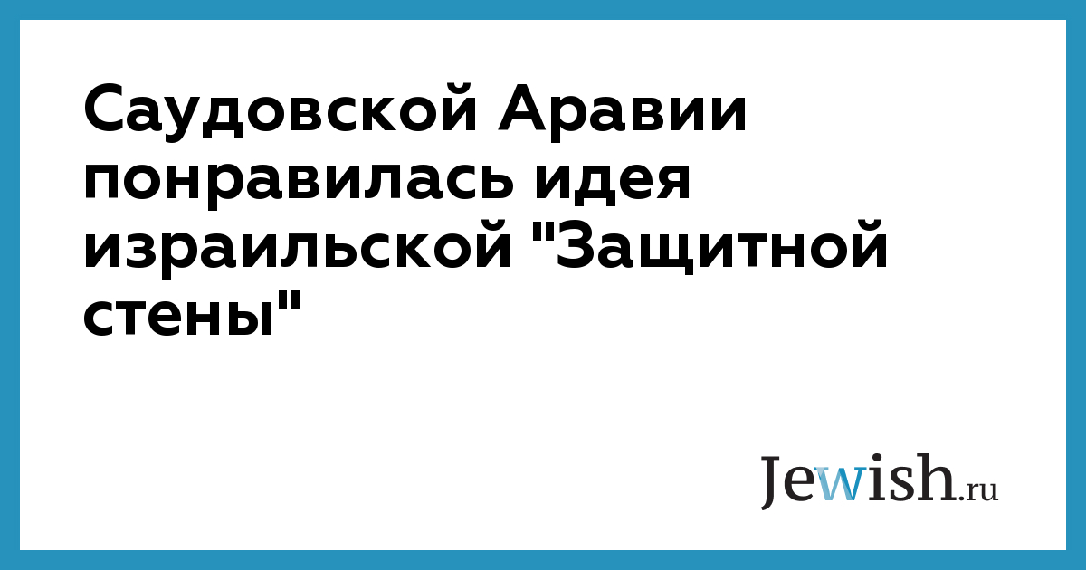 Саудовской Аравии понравилась идея израильской "Защитной стены"