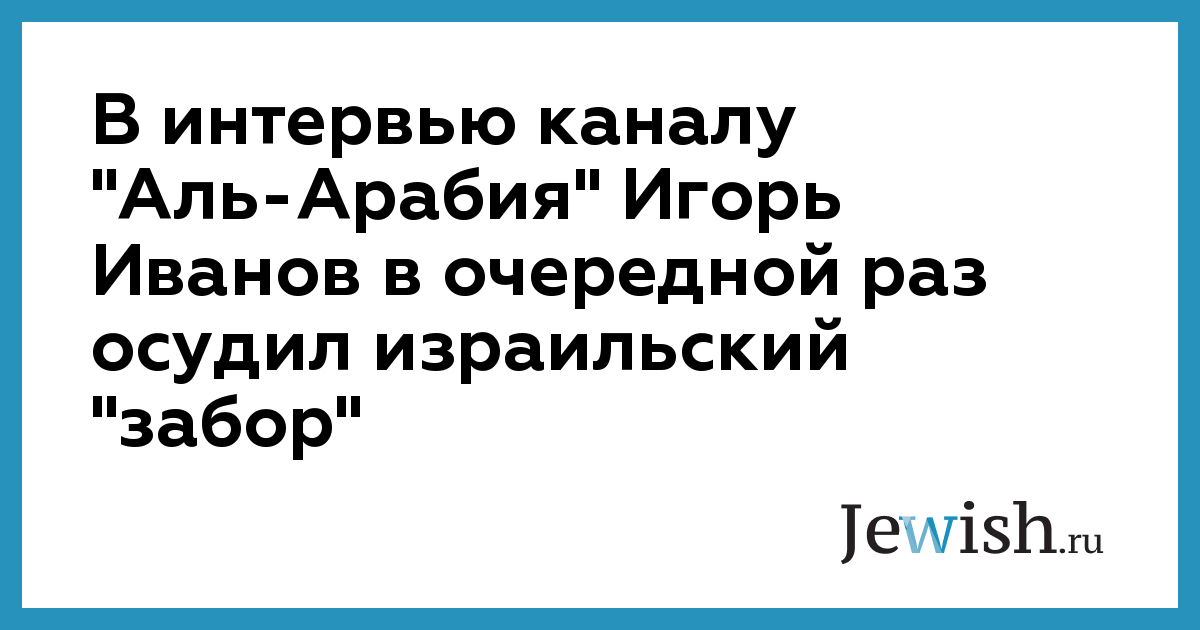 В интервью каналу "Аль-Арабия" Игорь Иванов в очередной раз осудил израильский "забор"