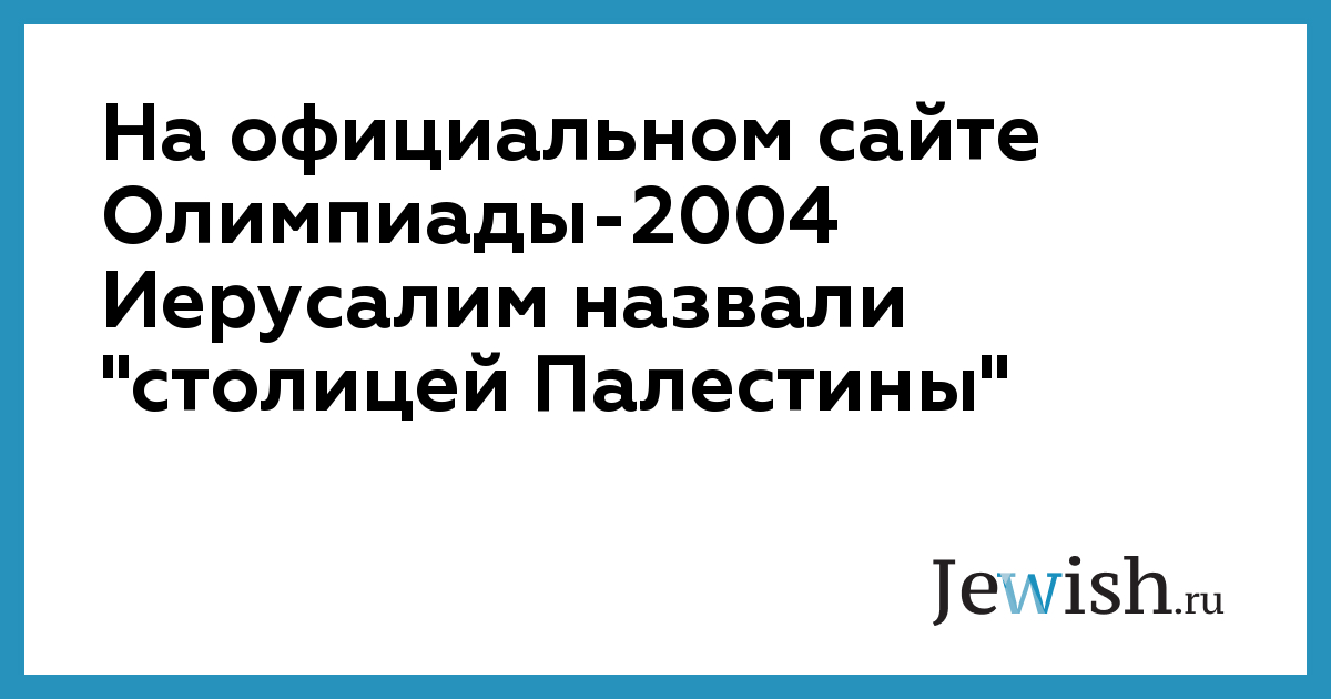 На официальном сайте Олимпиады-2004 Иерусалим назвали "столицей Палестины"