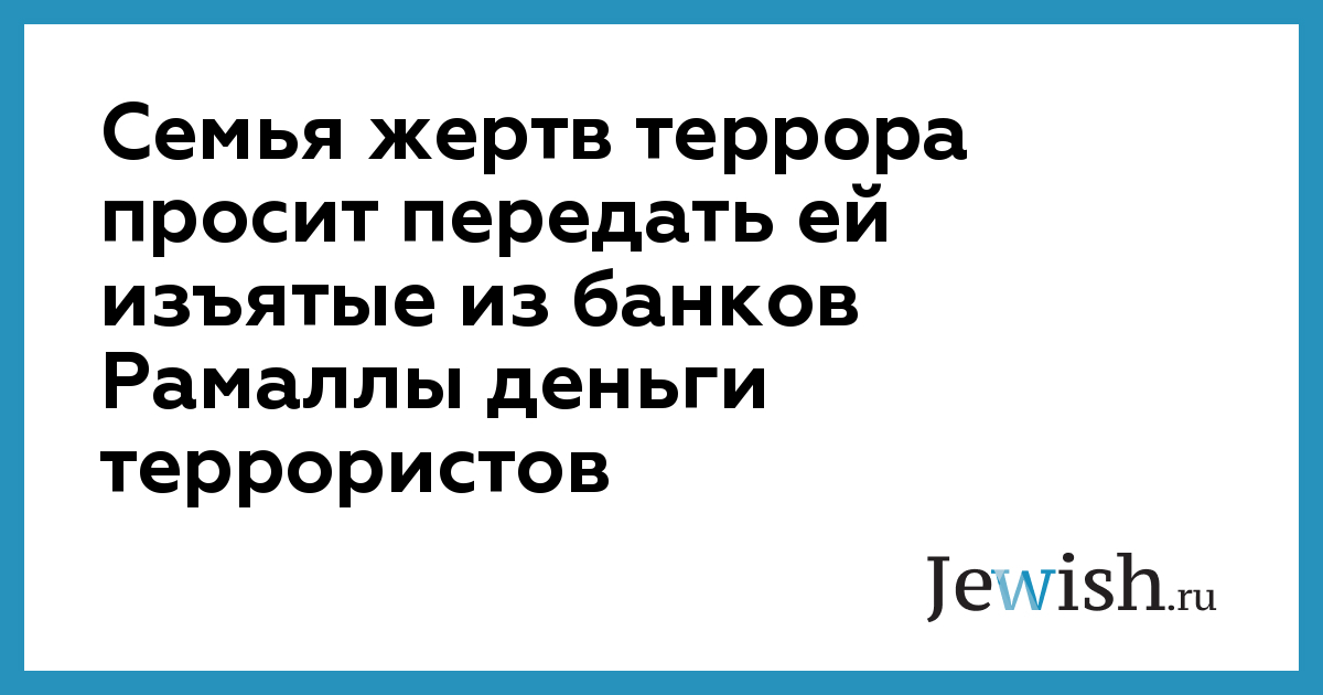 Семья жертв террора просит передать ей изъятые из банков Рамаллы деньги террористов