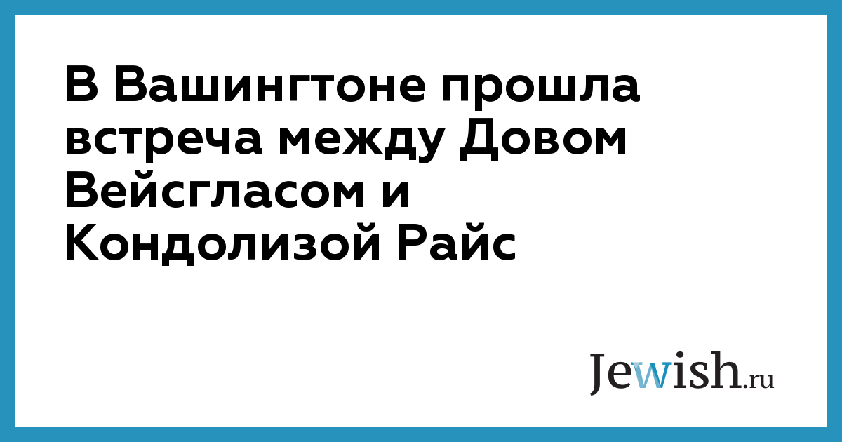 В Вашингтоне прошла встреча между Довом Вейсгласом и Кондолизой Райс