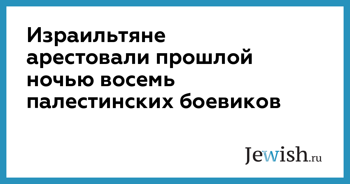 Израильтяне арестовали прошлой ночью восемь палестинских боевиков