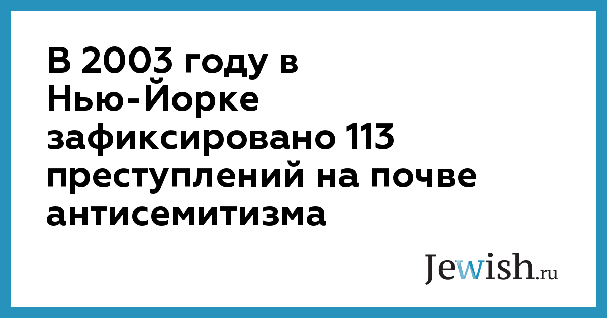 В 2003 году в Нью-Йорке зафиксировано 113 преступлений на почве антисемитизма