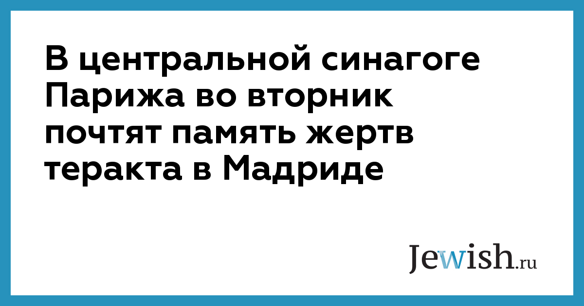 Главная еврейская организация Парижа, "Центральная Консистория" объявила, что во вторник в синагоге "Пари Ля Виктор" будет проведена специальная мемориальная служба в память о жертвах теракта в Испании, "равно как и о жертвах терроризма во всем мире, от Нью-Йорка и Бали до Иерусалима и Касабланки".