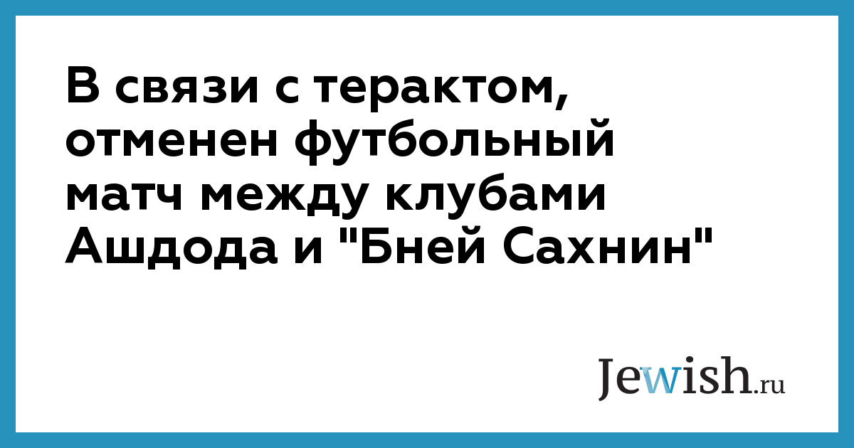 В связи с терактом, отменен футбольный матч между клубами Ашдода и "Бней Сахнин"