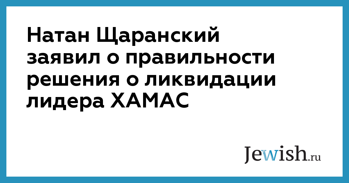 Натан Щаранский заявил о правильности решения о ликвидации лидера ХАМАС