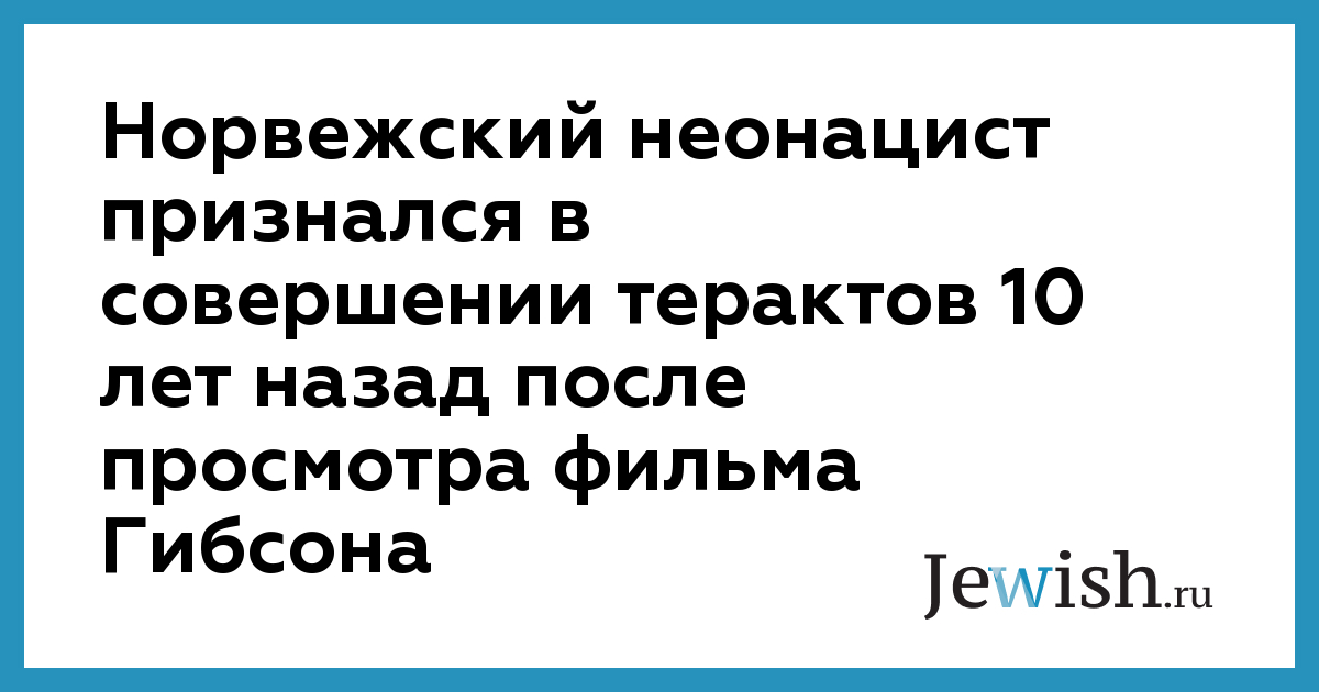 Норвежский неонацист признался в совершении терактов 10 лет назад после просмотра фильма Гибсона