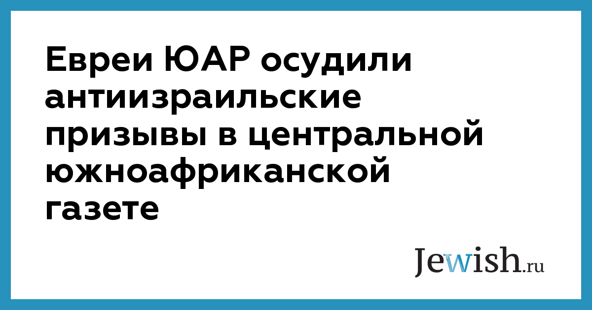 Евреи ЮАР осудили антиизраильские призывы в центральной южноафриканской газете