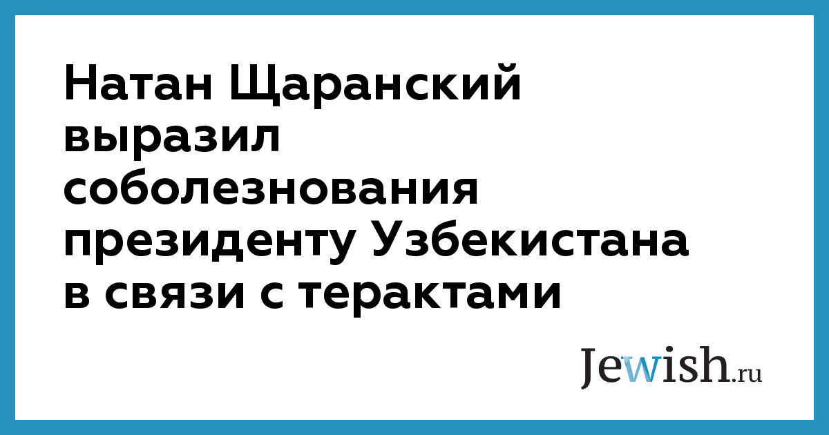 Натан Щаранский выразил соболезнования президенту Узбекистана в связи с терактами