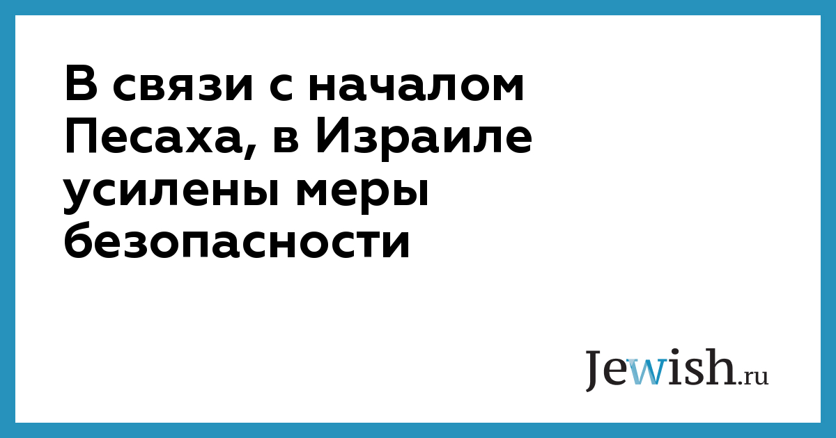 В связи с началом Песаха, в Израиле усилены меры безопасности