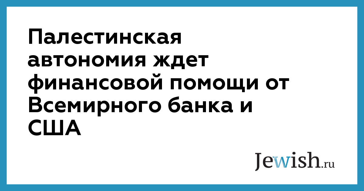 Палестинская автономия ждет финансовой помощи от Всемирного банка и США