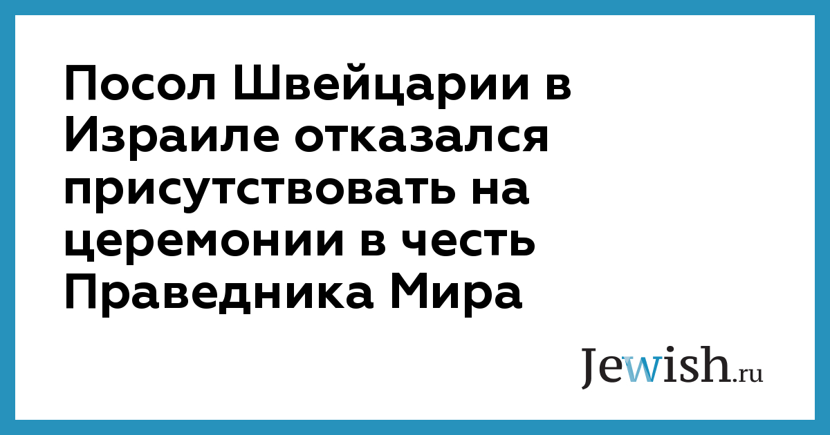 Посол Швейцарии в Израиле отказался присутствовать на церемонии в честь Праведника Мира