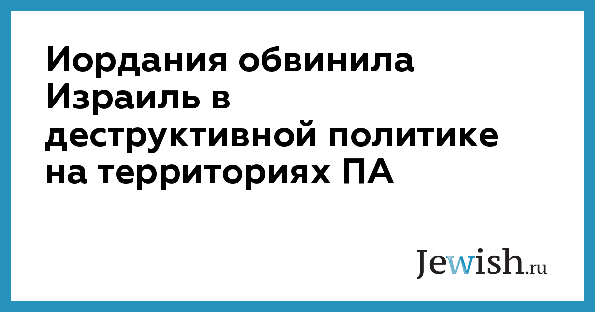 Иордания обвинила Израиль в деструктивной политике на территориях ПА
