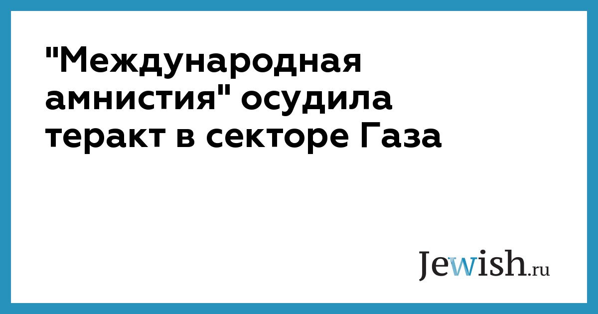 В своем послании Amnesty International называет теракт "преступлением против человечества" и призывает власти автономии найти и наказать виновников злодеяния. Организация также заявила, что палестинцы должны немедленно прекратить атаки на мирное израильское население.