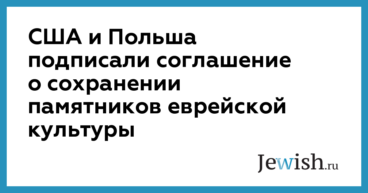 США и Польша подписали соглашение о сохранении памятников еврейской культуры