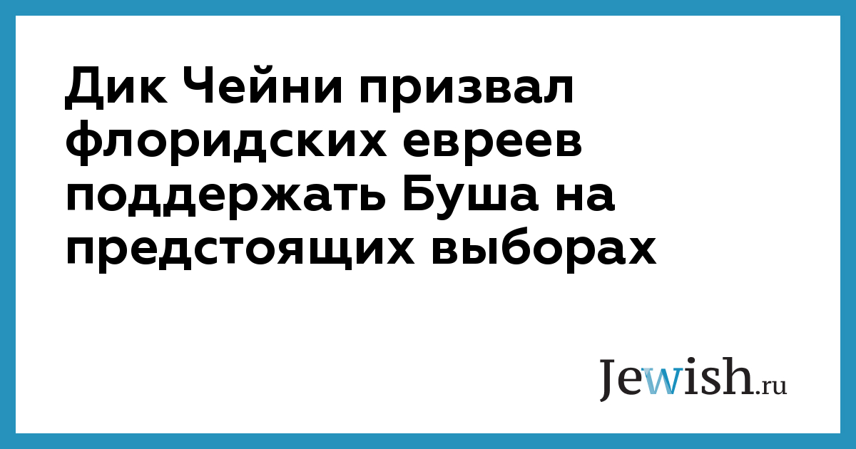Дик Чейни призвал флоридских евреев поддержать Буша на предстоящих выборах