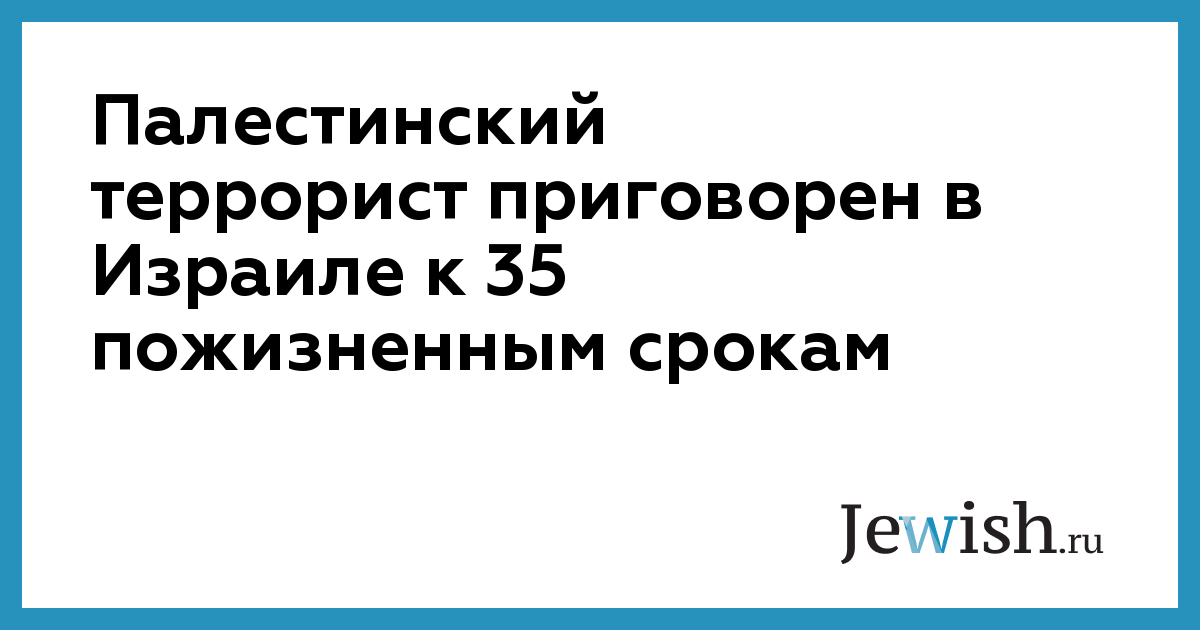 Палестинский террорист приговорен в Израиле к 35 пожизненным срокам