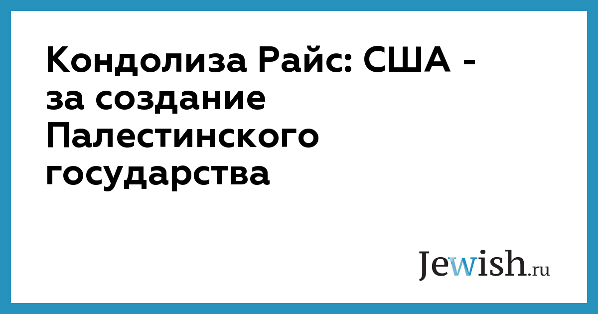 Кондолиза Райс: США — за создание Палестинского государства