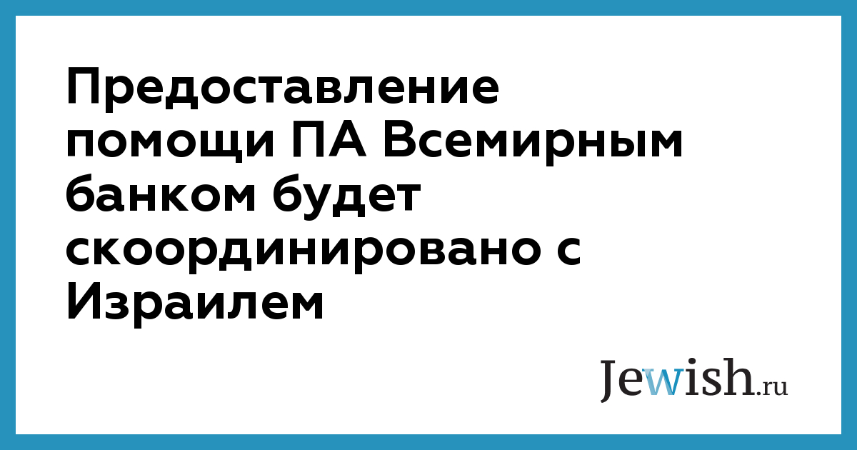 Предоставление помощи ПА Всемирным банком будет скоординировано с Израилем