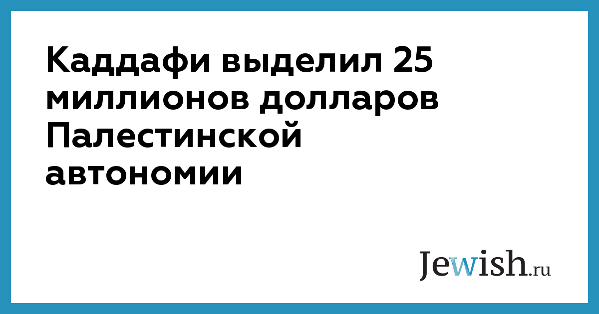 Как отмечается, деньги поступят из личного фонда Каддафи, созданного для оказания помощи братьям-мусульманам. Решение о финансовой поддержке палестинцев было принято во время саммита Лиги арабских государств в Тунисе. Однако по поводу того, на что конкретно предназначены выделяемые ПА миллионы, никаких подробностей не сообщается.