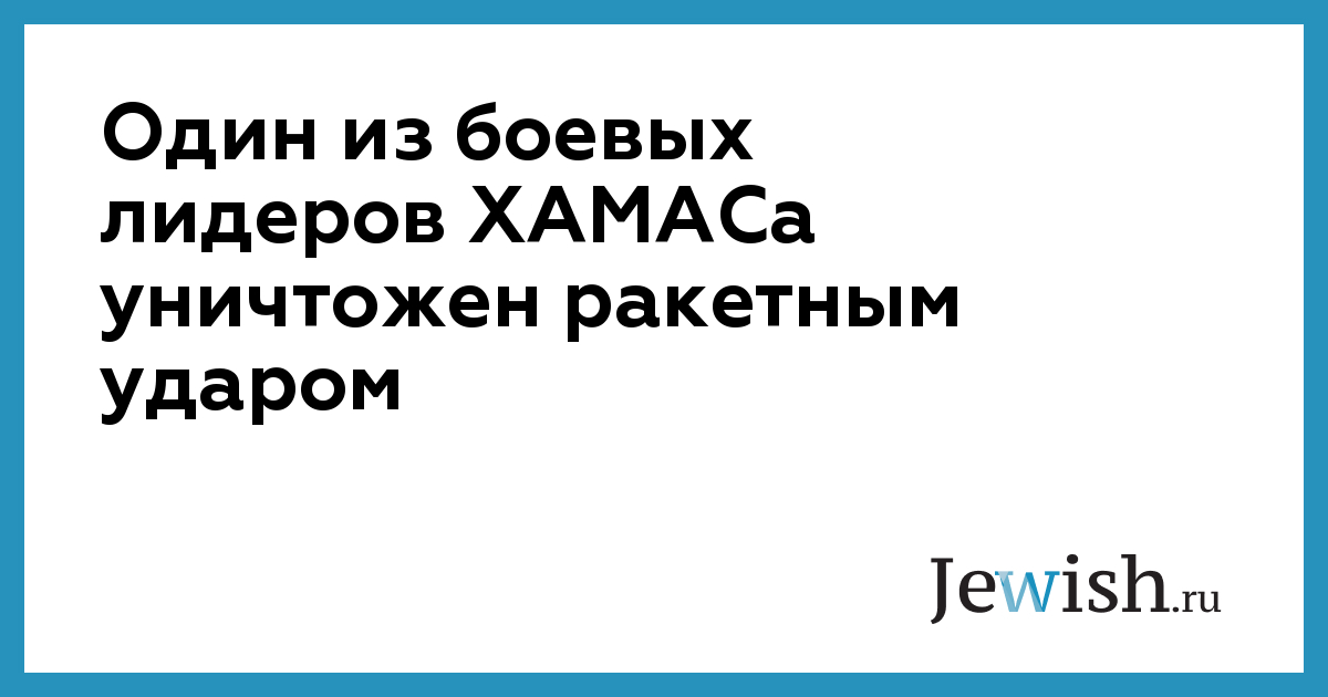 Один из боевых лидеров ХАМАСа уничтожен ракетным ударом
