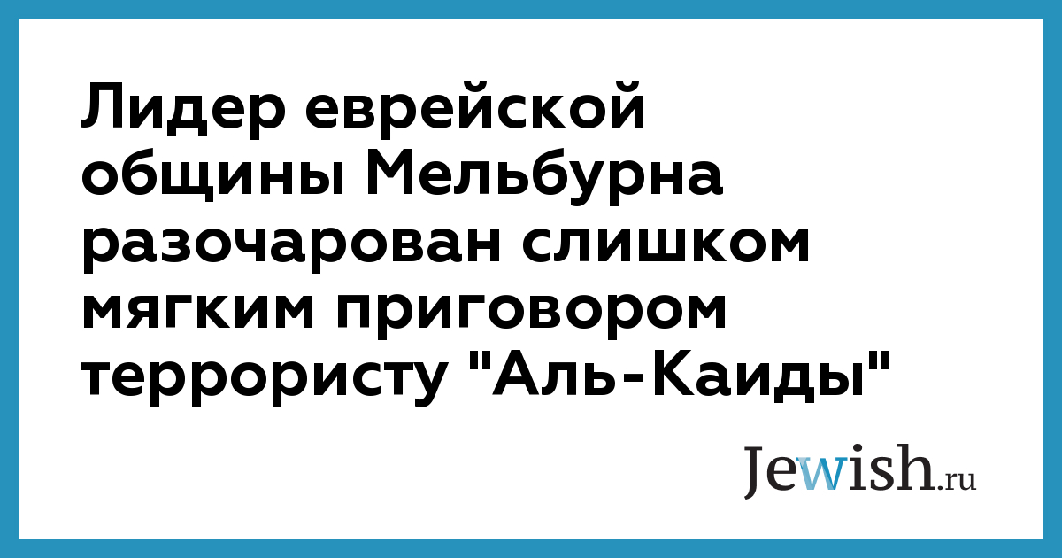 Лидер еврейской общины Мельбурна разочарован слишком мягким приговором террористу "Аль-Каиды"