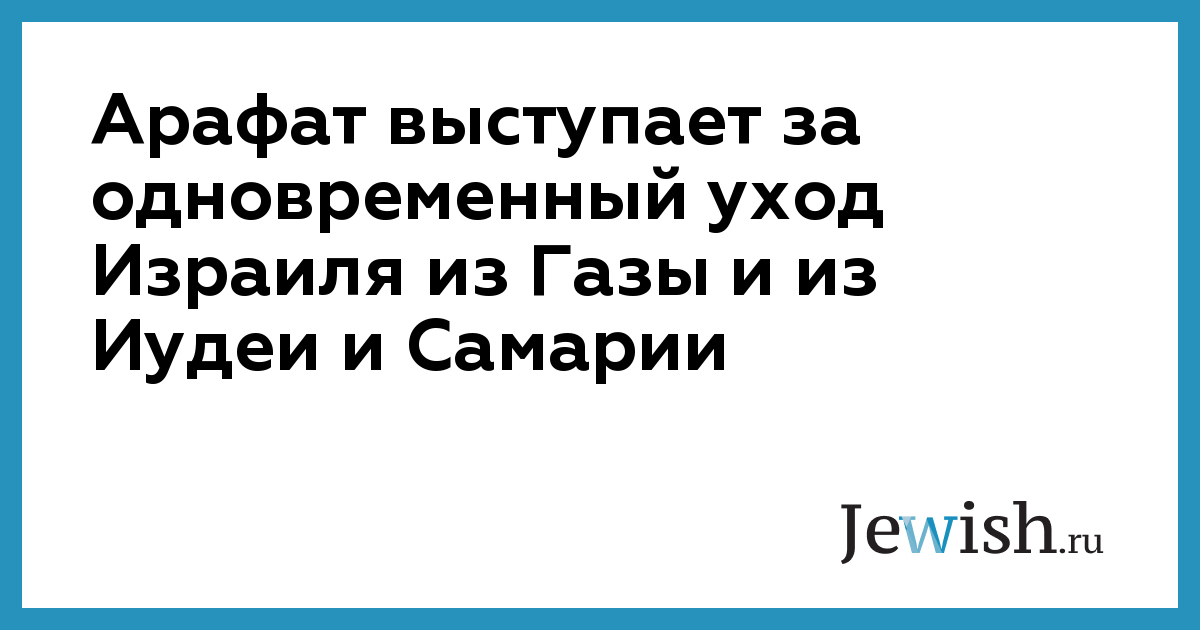 Арафат выступает за одновременный уход Израиля из Газы и из Иудеи и Самарии