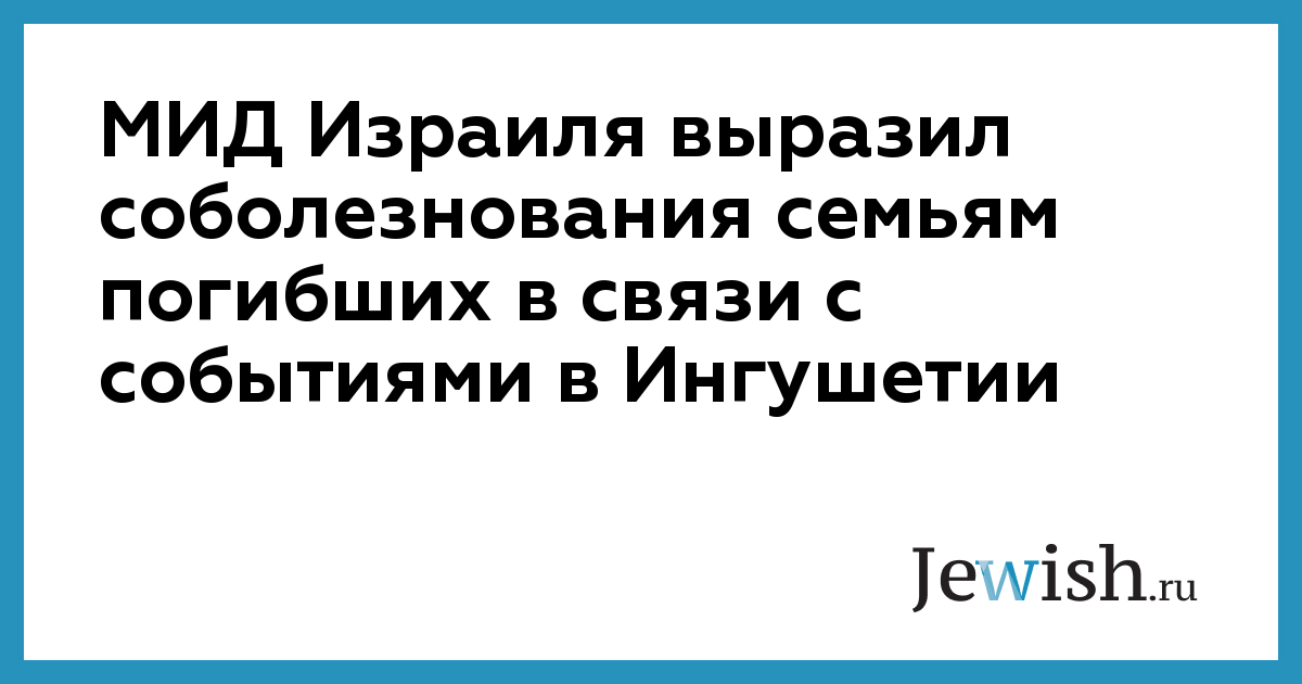 МИД Израиля выразил соболезнования семьям погибших в связи с событиями в Ингушетии