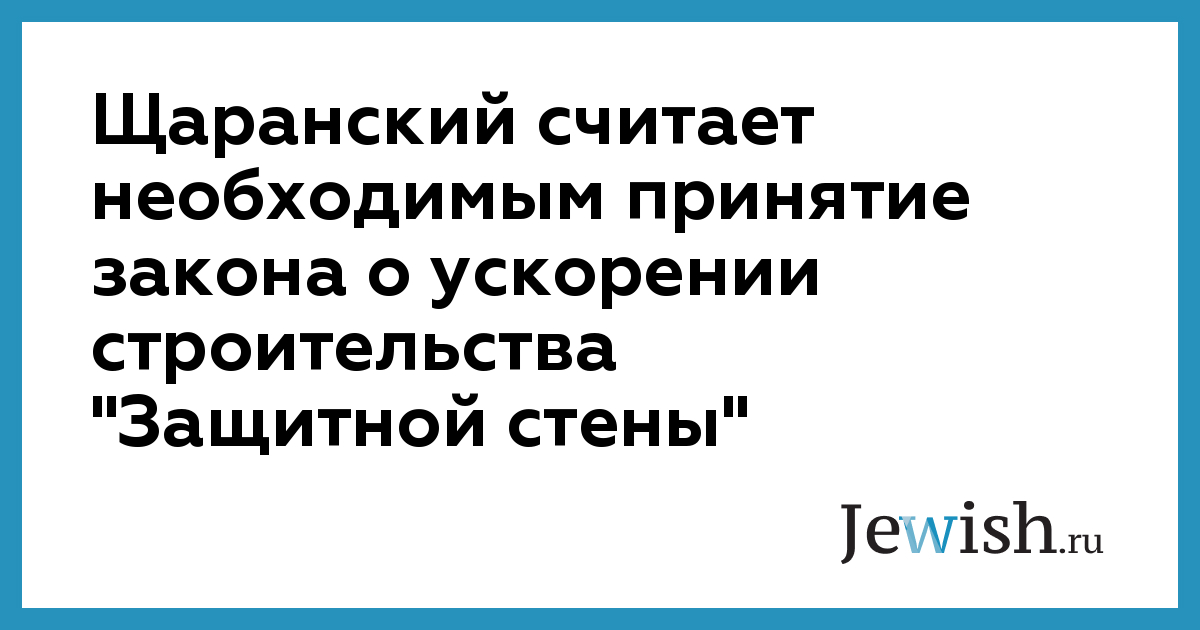 Щаранский считает необходимым принятие закона о ускорении строительства "Защитной стены"