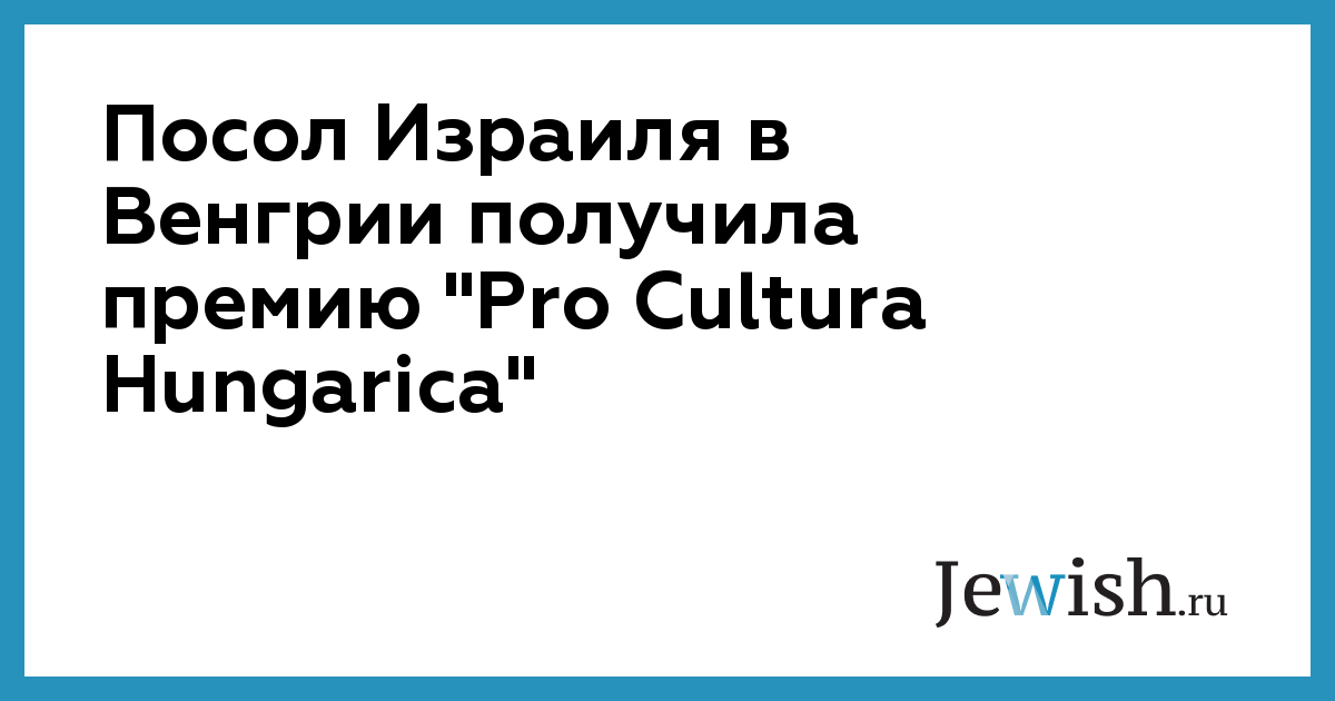 Посол Израиля в Венгрии получила премию "Pro Cultura Hungarica"