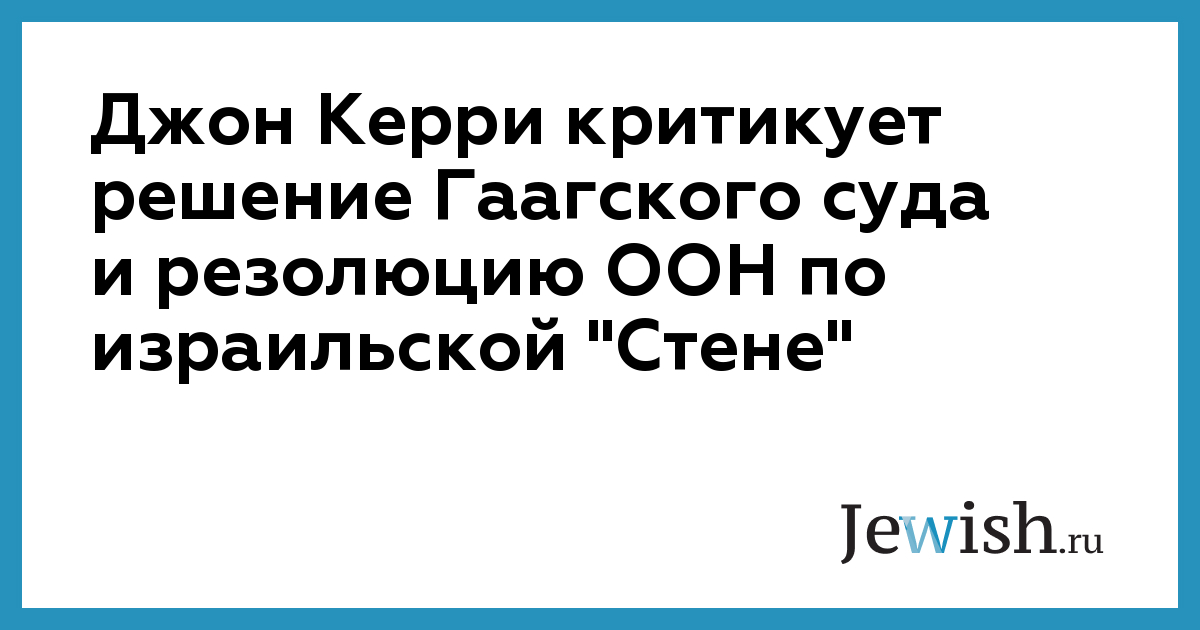 Джон Керри критикует решение Гаагского суда и резолюцию ООН по израильской "Стене"