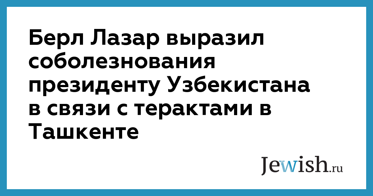 "От имени еврейской общины России и от себя лично выражаю самые глубокие и искренние соболезнования семьям и близким невинных людей, пострадавших в результате серии терактов, совершенных сегодня в Ташкенте. Молюсь о скорейшем выздоровлении раненых, желаю им скорее залечить телесные и душевные травмы.
