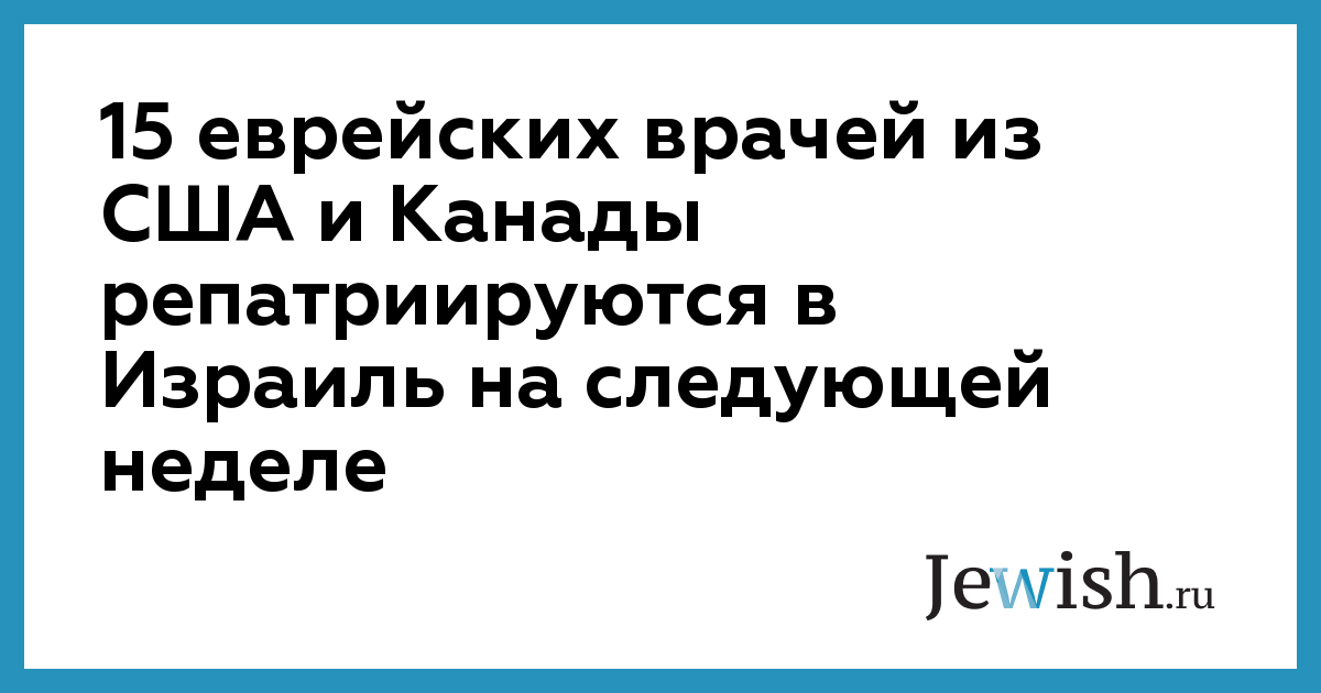 15 еврейских врачей из США и Канады репатриируются в Израиль на следующей неделе