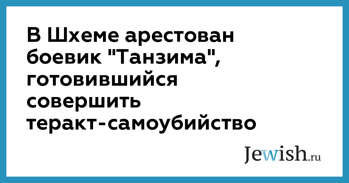 В Шхеме арестован боевик "Танзима", готовившийся совершить теракт-самоубийство