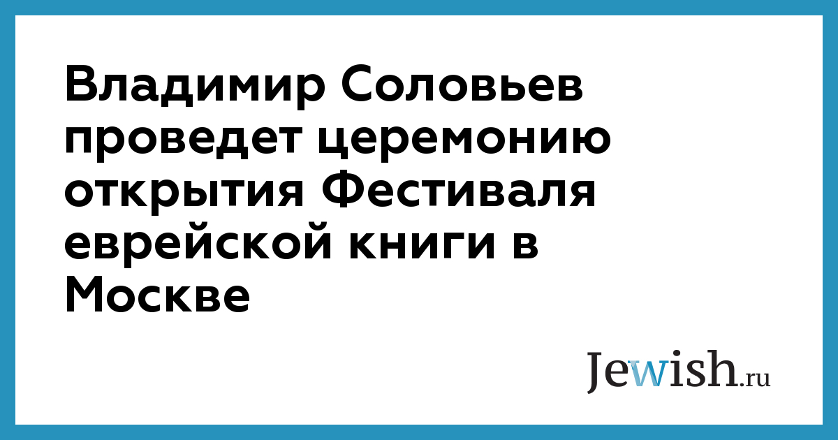 Владимир Соловьев проведет церемонию открытия Фестиваля еврейской книги в Москве
