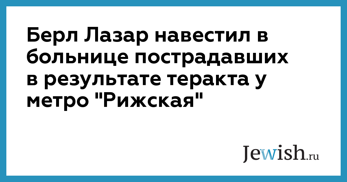 «Я только, что вернулся из больницы, где навещал члена нашей общины Зою Ароновну Гудман, — рассказал главный раввин России. — Вчера из МЕОЦ она отправилась к метро «Рижская», оказавшись там вместе со своей семьей в момент взрыва. Ей уже сделана операция, и ее жизнь находится вне опасности. Однако ее сын до сих пор не пришел в сознание после проведенной операции. Мы все молимся за него,» -сказал главный раввин России.