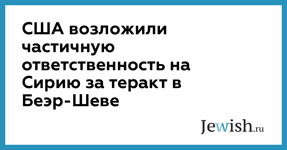 США возложили частичную ответственность на Сирию за теракт в Беэр-Шеве