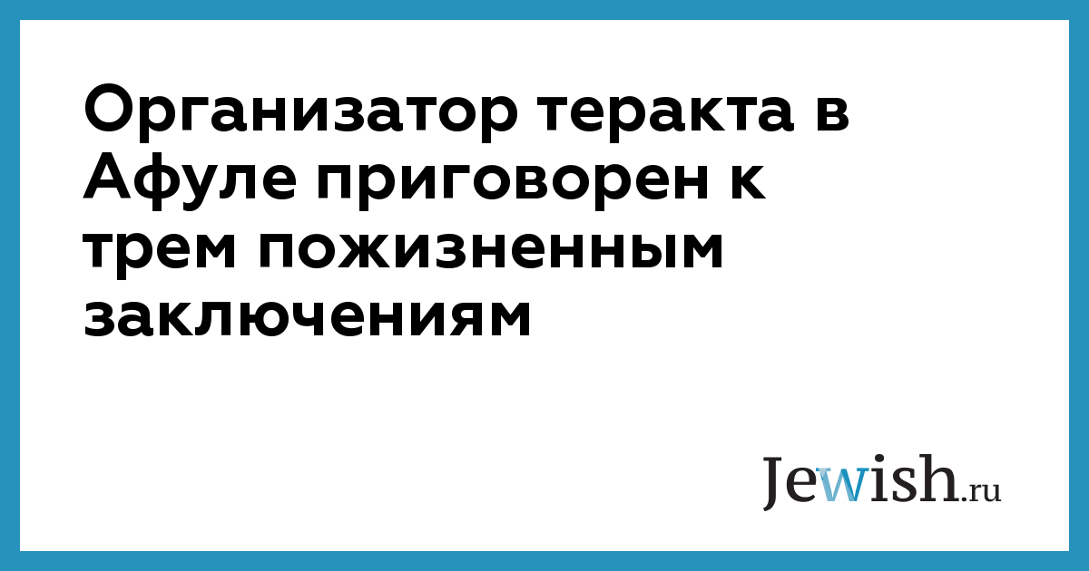 Организатор теракта в Афуле приговорен к трем пожизненным заключениям
