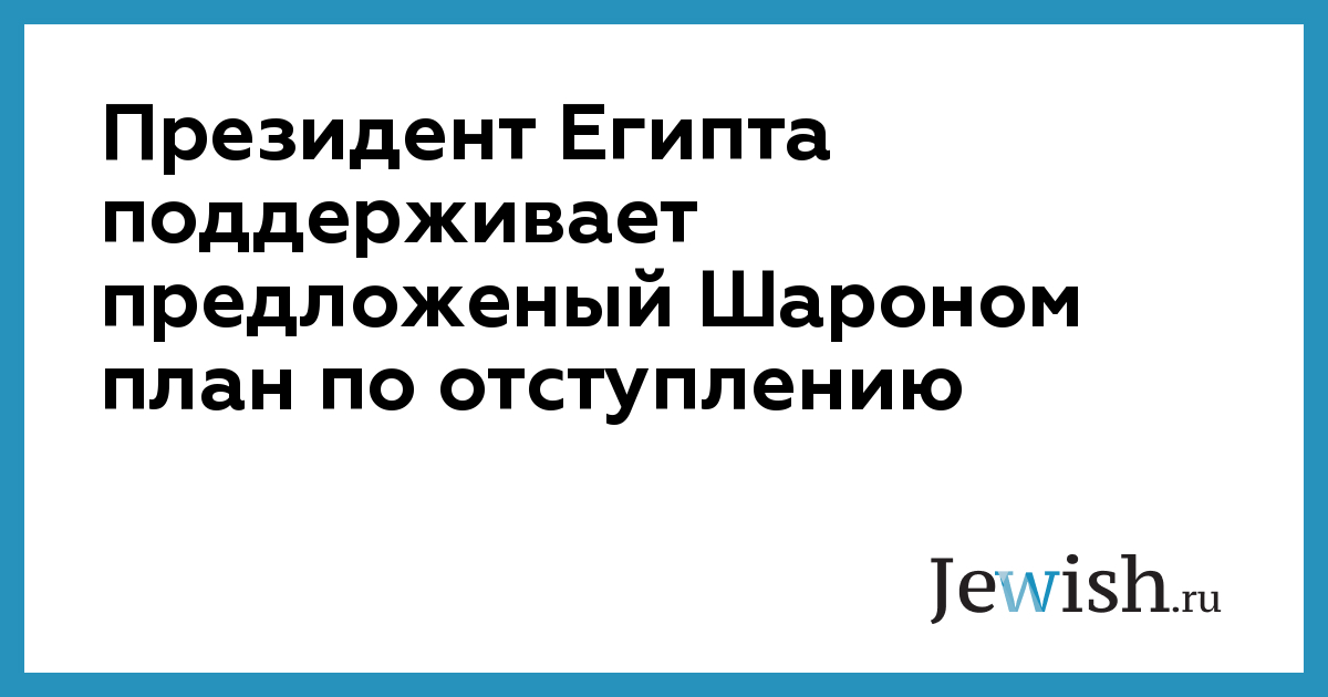 Президент Египта поддерживает предложеный Шароном план по отступлению