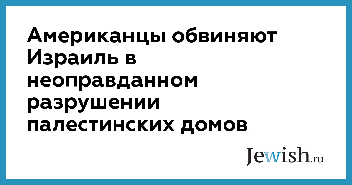 Американцы обвиняют Израиль в неоправданном разрушении палестинских домов