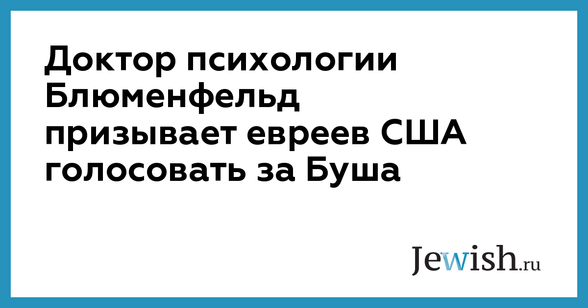 Доктор психологии Блюменфельд призывает евреев США голосовать за Буша