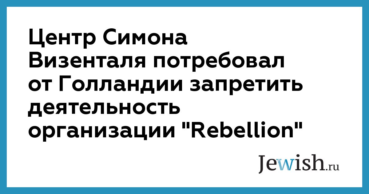 Центр Симона Визенталя потребовал от Голландии запретить деятельность организации "Rebellion"