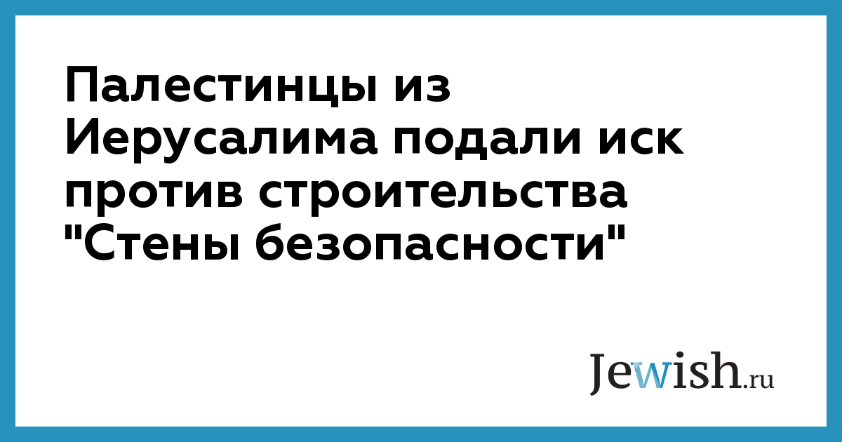 Палестинцы из Иерусалима подали иск против строительства "Стены безопасности"