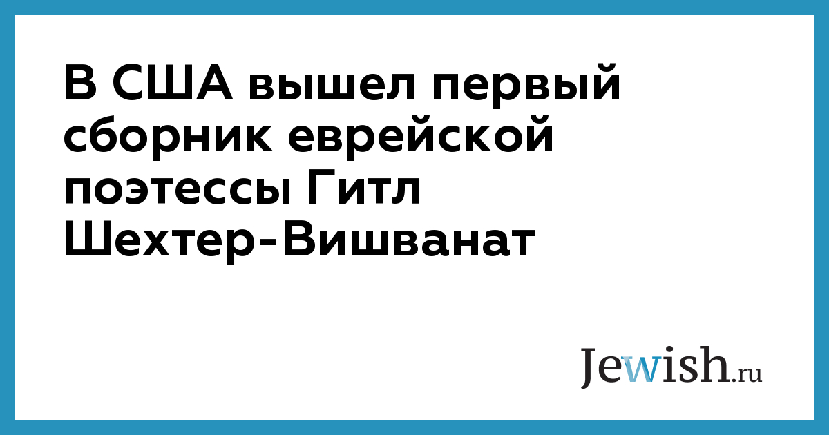 В США вышел первый сборник еврейской поэтессы Гитл Шехтер-Вишванат