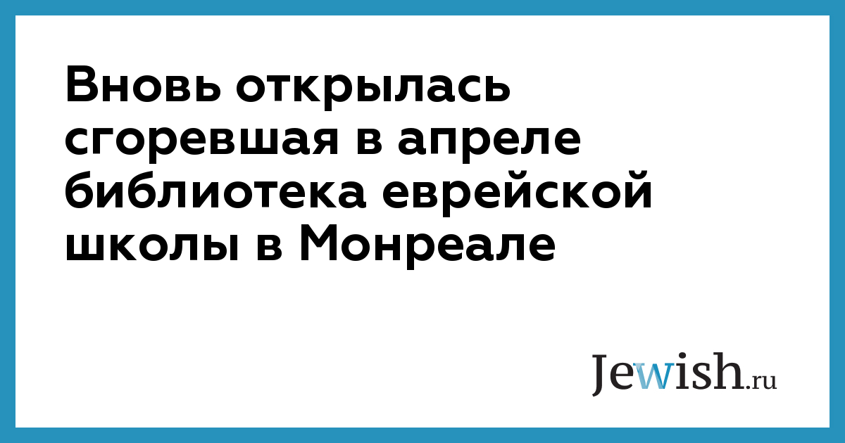 Вновь открылась сгоревшая в апреле библиотека еврейской школы в Монреале