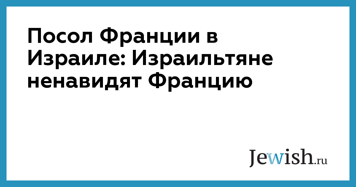 Посол Франции в Израиле: Израильтяне ненавидят Францию