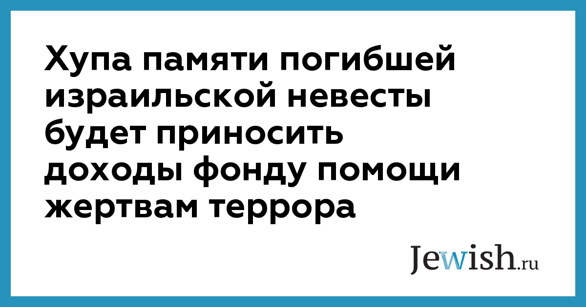 Хупа памяти погибшей израильской невесты будет приносить доходы фонду помощи жертвам террора